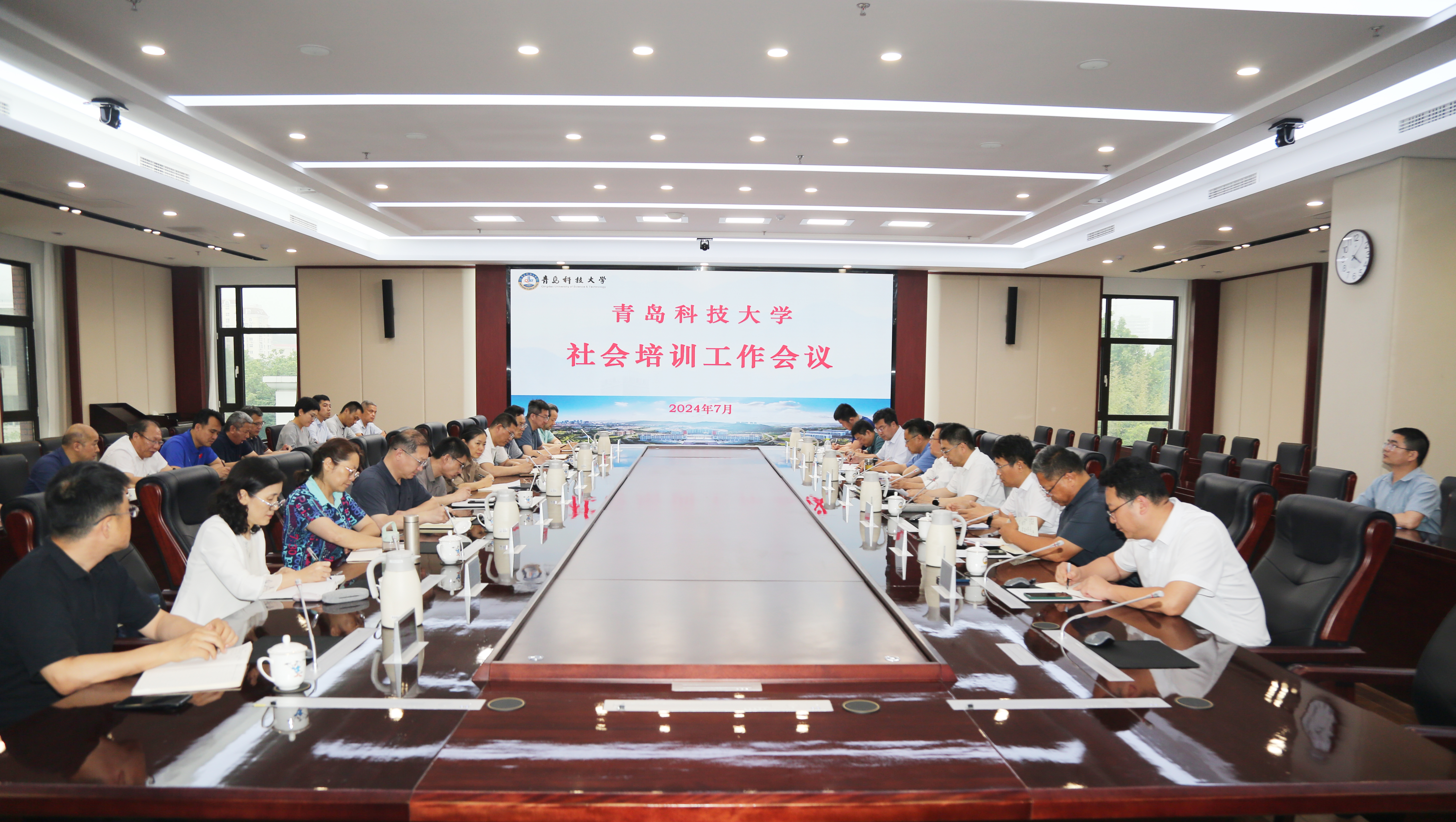 7月5日,学校社会培训工作会议在崂山校区综合服务楼赛轮会议室召开。党委书记李兴伟出席会议并讲话。党委常委、副校长吕万翔,党委常委、宣传部部长张洪坤出席会议。